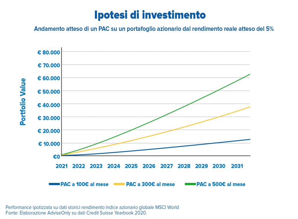 Investendo con regolarità, attraverso piani di accumulo (PAC), puoi trasformare nel tempo anche risparmi contenuti in un grande capitale.